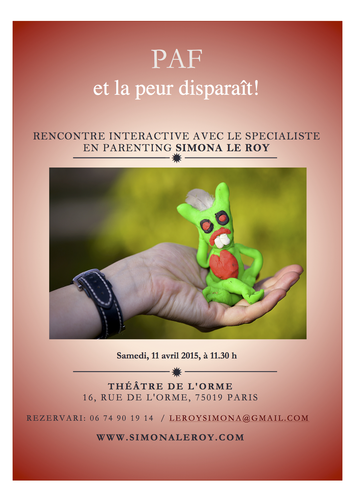 La méthode PAF http://www.amazon.fr/m%C3%A9thode-PAF-vaincre-peurs-enfantines-ebook/dp/B00OQRN45Q/ref=sr_1_1?ie=UTF8&qid=1415217841&sr=8-1&keywords=PAF+METHODE